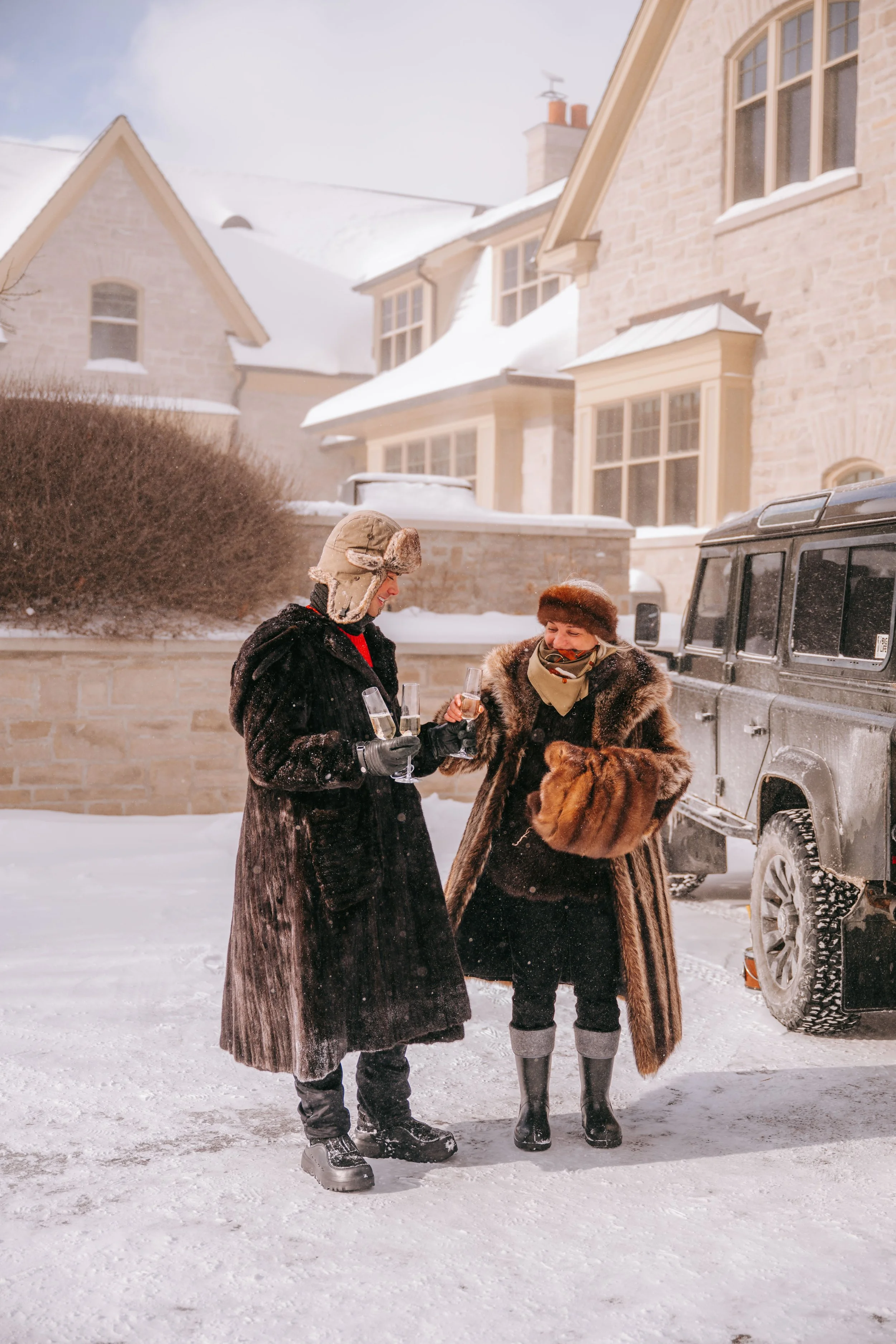 Over two days, alongside our talented marketing team and a few wonderful friends, we produced a winter lifestyle campaign that showcased the property in action. From snowshoeing and snow tubing to snowmobiling and exploring the grounds by vintage Land Rover, we captured the energy, recreation, and natural beauty that make winter living in Canada so compelling.